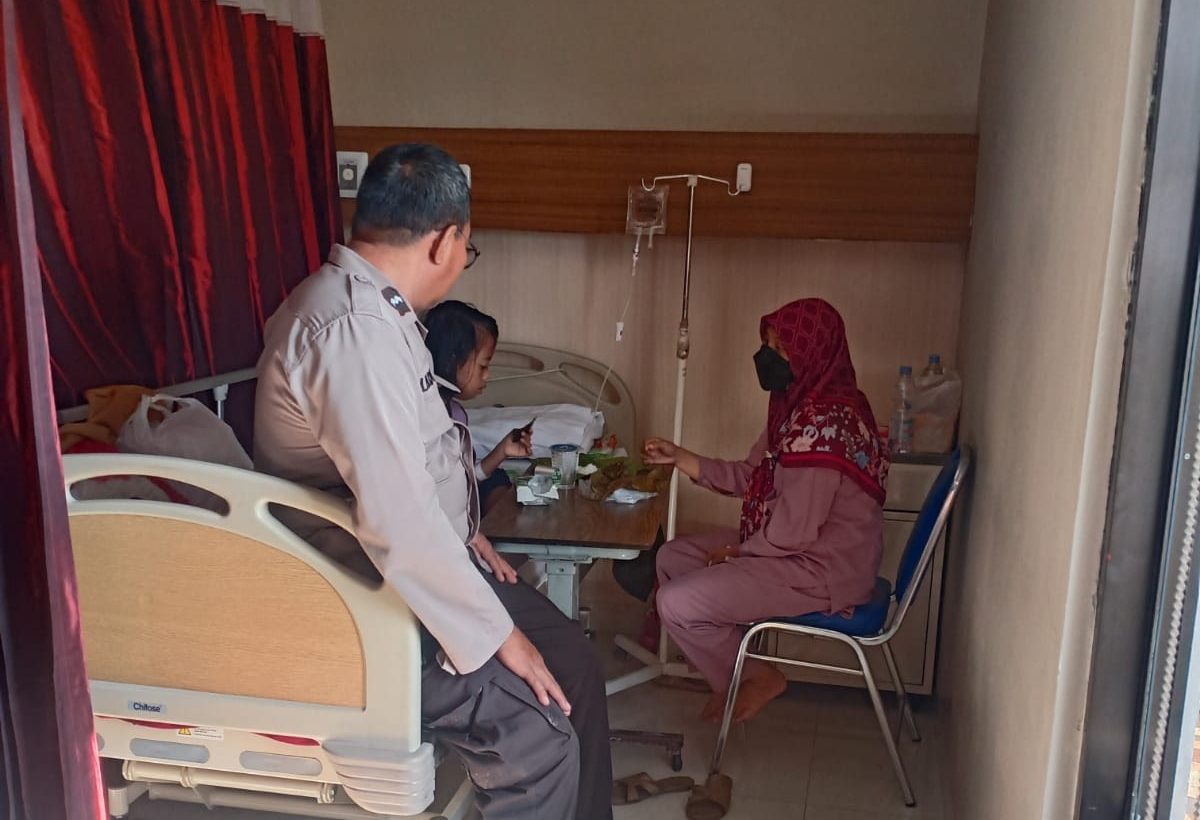 Bhabinkamtibmas Desa Dangdeur, Aipda M.Zulkifli saat menjenguk anak salah satu warga di desa binaannya yang sakit dirawat di Rumah Sakit Abdul Radjak Purwakarta.