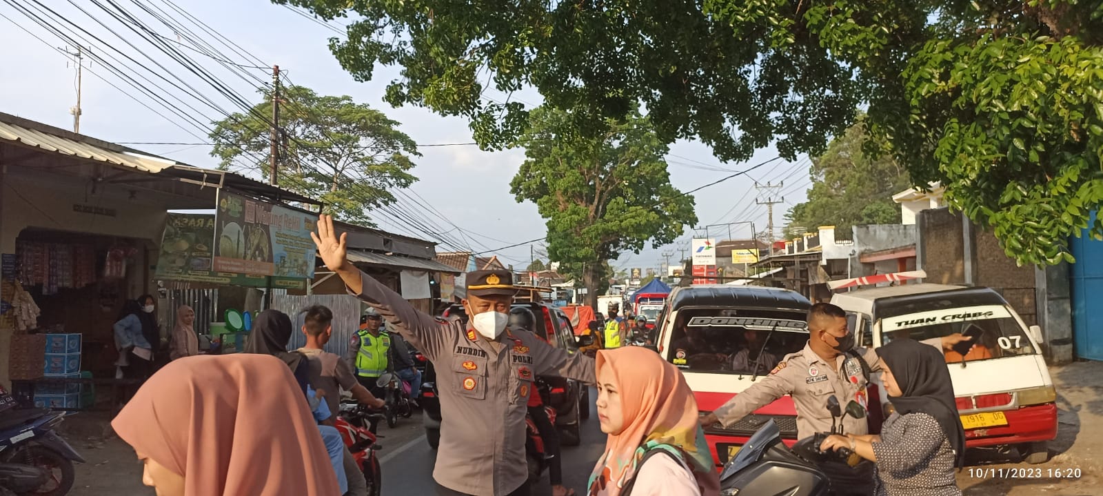 KILASGARUTNEWS.id|Sejumlah Personil Polsek Karangpawitan, Polres Garut, Polda Jawa Barat, tengah melaksanakan giat rawan sore sebagai antisipasi untuk mengurai kepadatan arus lalu lintas dan penertiban parkir liar yang ada di bahu jalan tepatnya di depan PT Daux Cosmetic maupun tempat – tempat yang dianggap rawan kecelakaan lalu lintas, sejak pukul 16.00 WIB sampai dengan selesai. Senin (13/11/2023).